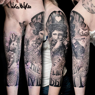 J'ai toujours été fan de tatouages (certains styles plus que d'autres), ce qui me fascine c'est la dimension permanente de cet art. On se marque la peau avec un morceau de vie que l'on veut à jamais graver dans le temps. Mais le travail de Niko pousse cette fascination bien au delà, ce qui m'éblouit, c'est la capacité qu'il a d'interpréter et de créer un univers complètement déjanté, de par le mélange de styles mais aussi l’emboîtement des éléments qui semblent se confondre dans une composition toujours juste et qui suit les courbes du corps de manière harmonieuse. Je ne vous cache pas que j'aimerais qu'il laisse libre cours à son talent sur moi un de ces quatre ! Un jour peut-être...soupir.... <3 Bon, en bref, vous l'aurez compris, je bave à chaque nouveau partage sur sa page Facebook, que je suis assidûment. Je vous laisse donc en images parsqu'euh..euh...bon...E N J O Y !!
